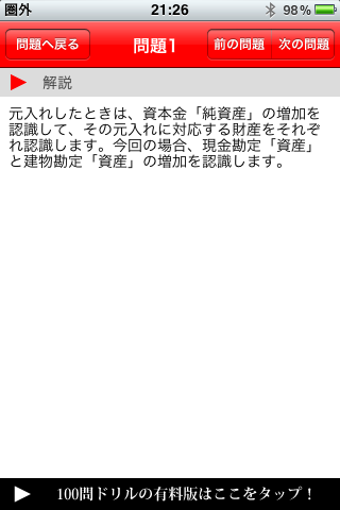 LEC簿記3級100問ドリル LITEは、日商簿記検定 3級の対策用問題集です。無料(LITE)版には10問、そして有料版には100問が用意されています。無料版は、「簿記検定がどんなものか」知るため、あるいは出題範囲を把握するために利用できるでしょう。操作は簡単かつシンプル、そして勘定科目を記入する手間がないので時間もかかりません。検定の受験者に限らず、会計学や経理の知識を気軽に試してみたい人にもお勧めです。